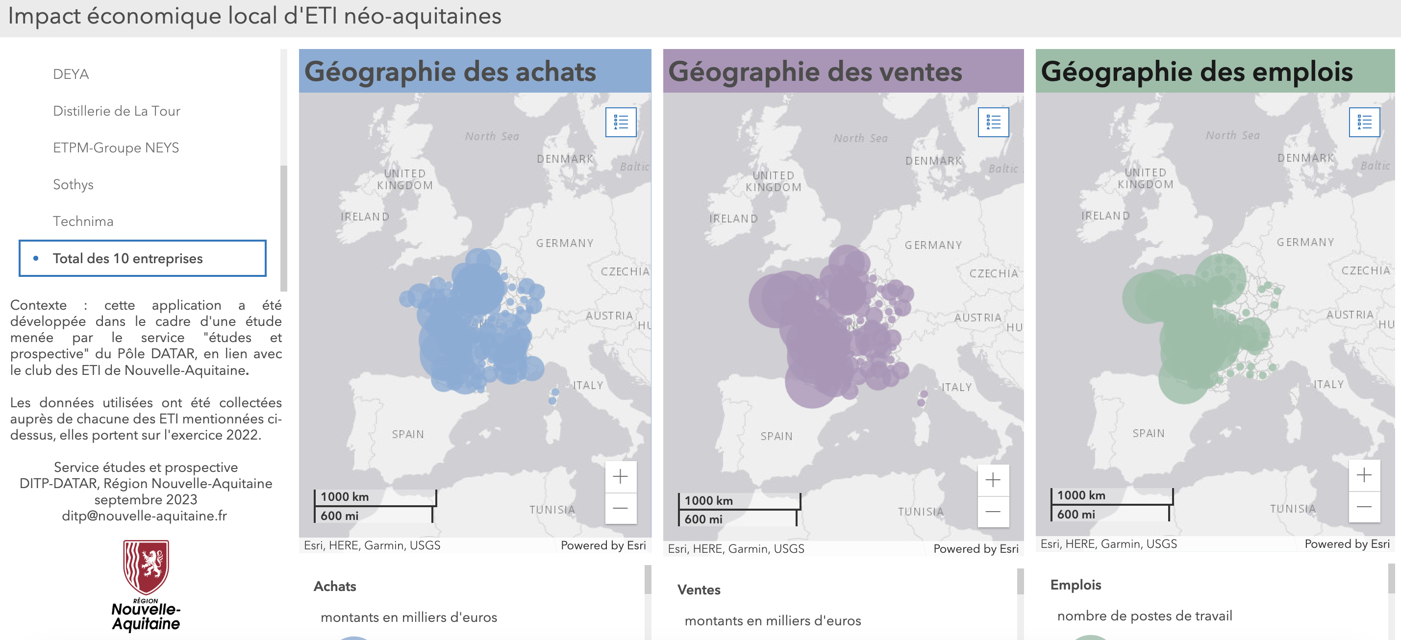Une étude menée de juillet à septembre 2023 par le Service Études et Prospective (Pôle DATAR) du Conseil Régional de Nouvelle-Aquitaine sur 10 Entreprises de Taille Intermédiaire a mesuré les effets directs (l’activité de l’entreprise), indirects (via les achats, le mécénat ou le sponsoring) et induits (via les salaires versés et la consommation locale des salariés) de l’activité économique des ETI.